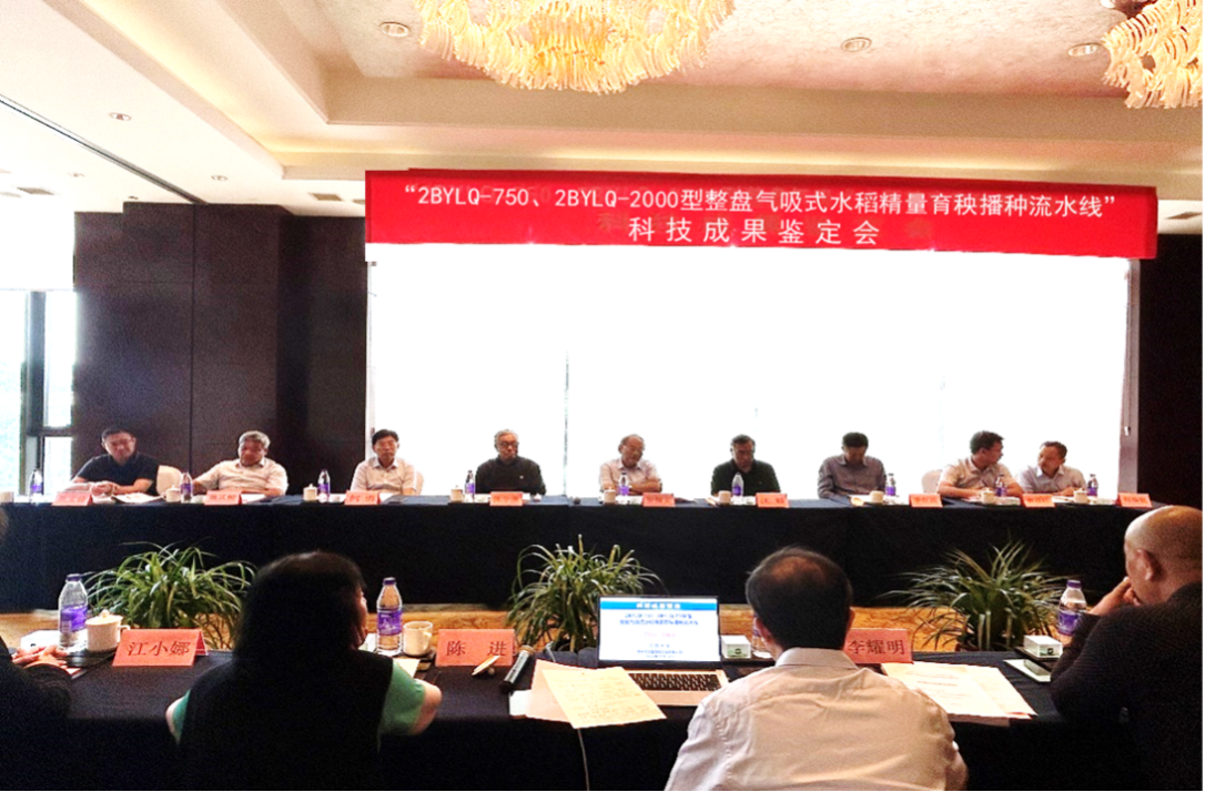 9月16日,中国机械工业联合会在常州市主持召开科技成果鉴定会,由大发在线和常州市风雷精密机械有限公司共同完成的“2BYLQ-750、2BYLQ-2000型整盘气吸式水稻精量育秧播种流水线”顺利通过科技成果鉴定。