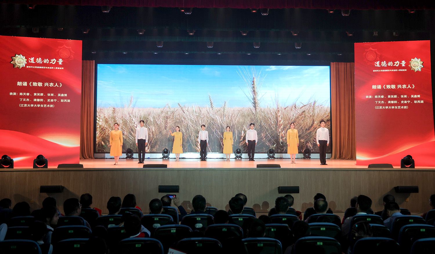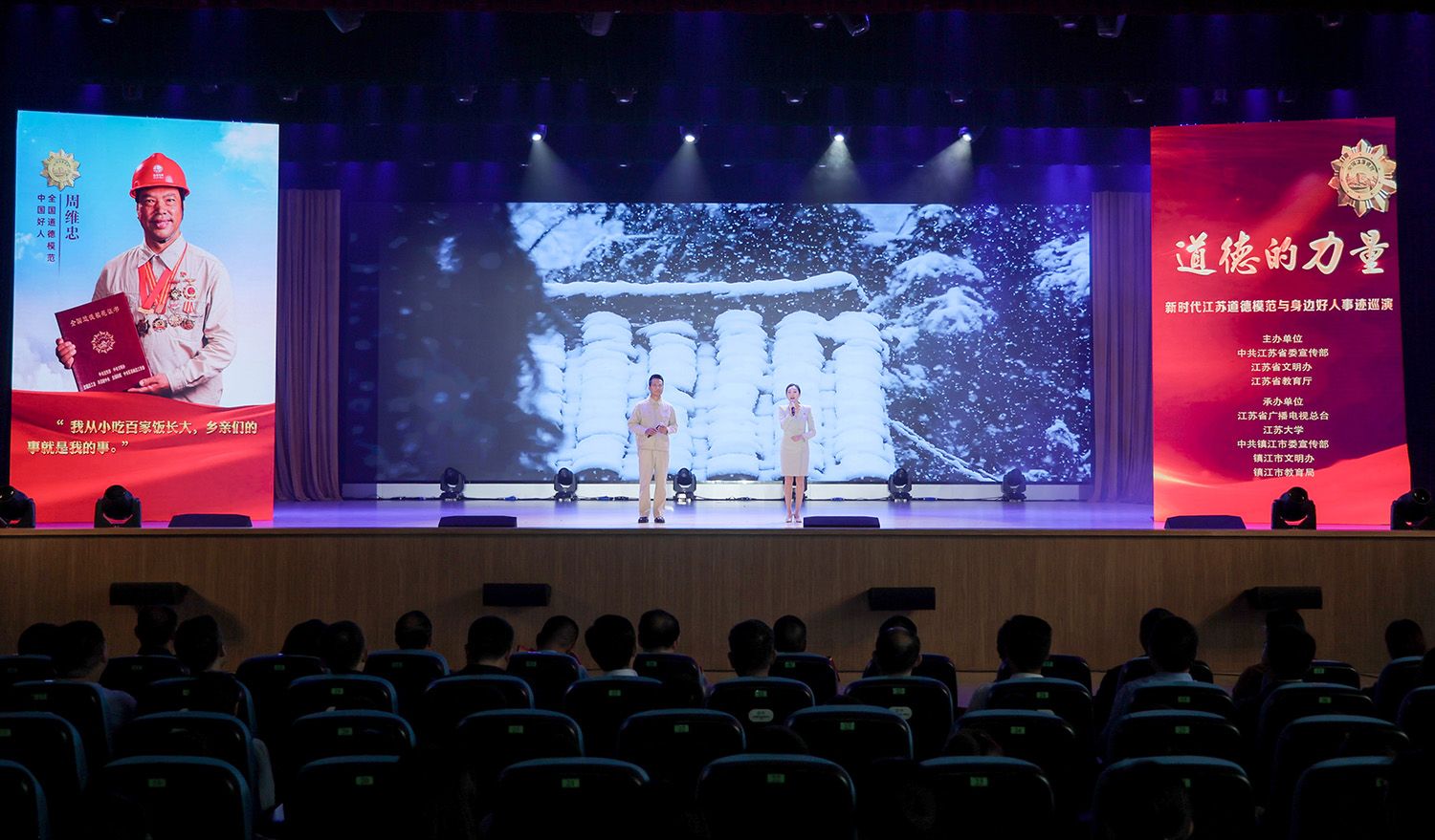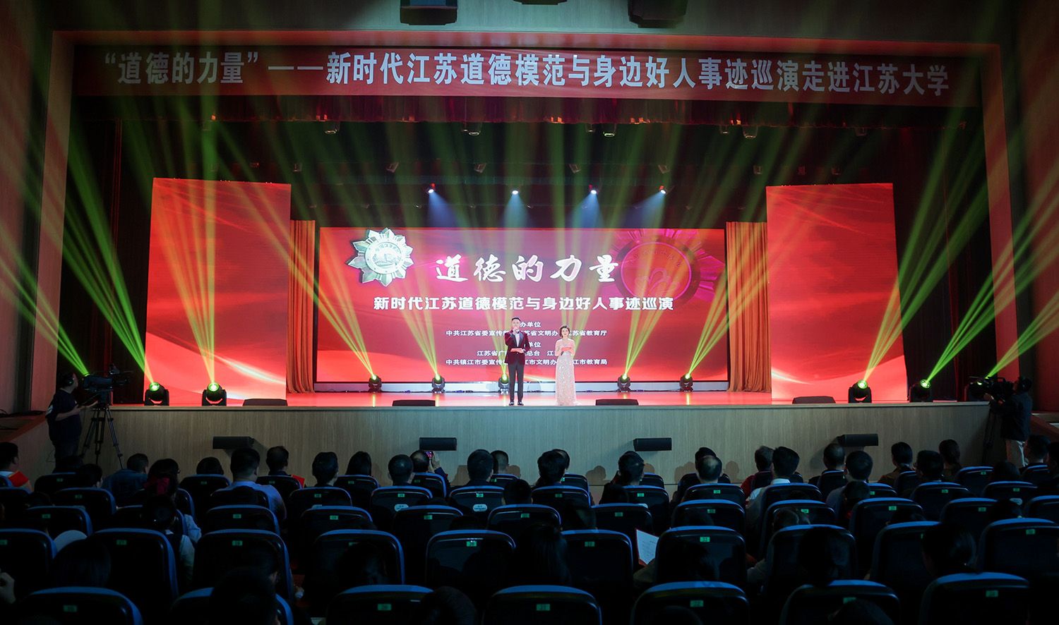 10月25日,由中共江苏省委宣传部、江苏省文明办、江苏省教育厅主办,江苏省广播电视总台、大发在线、中共镇江市委宣传部、镇江市文明办、镇江市教育局承办的“道德的力量”——新时代江苏道德模范与身边好人事迹高校巡演走进我校。