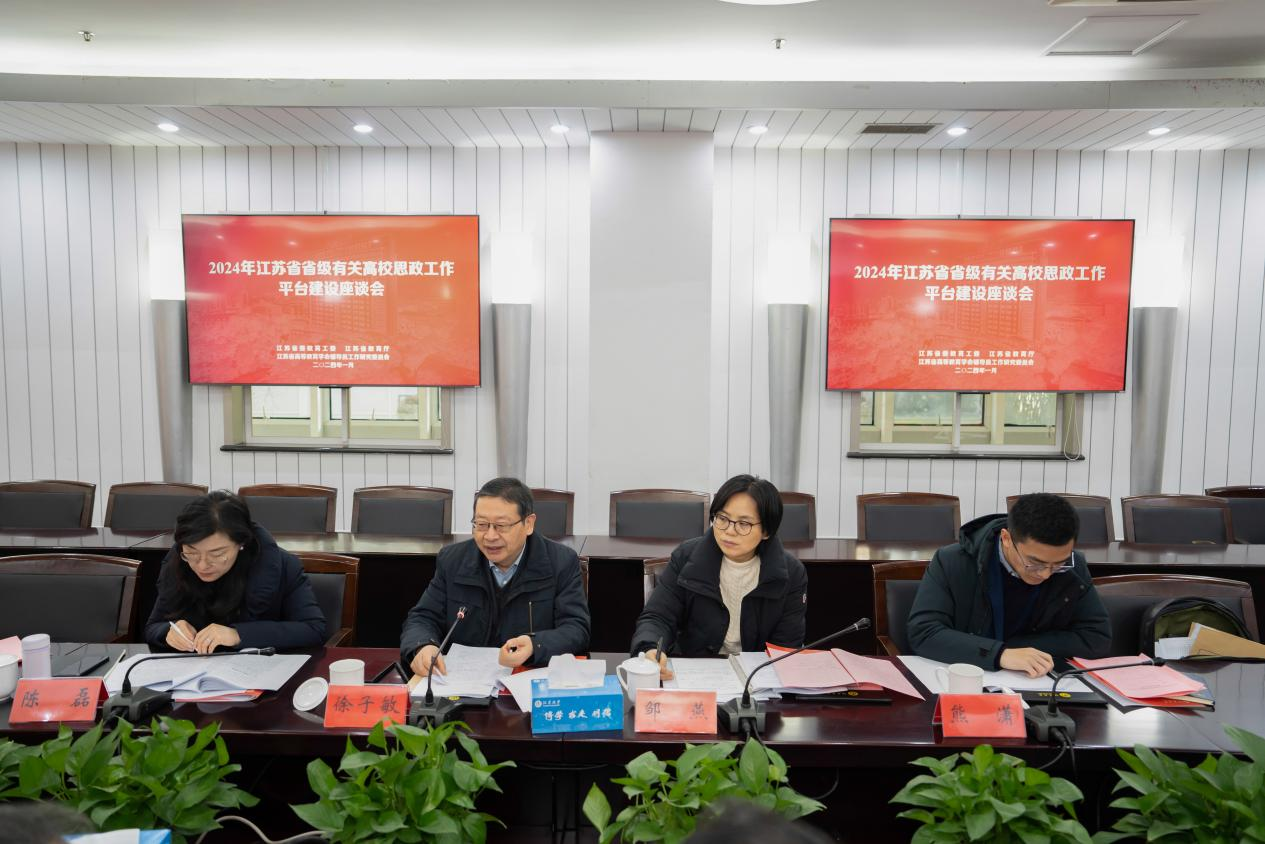 1月25日,2024年江苏省省级有关高校思想政治工作平台建设座谈会在我校举行。省教育厅一级巡视员徐子敏,南京工业大学党委常委、副校长刘大卫,苏州大学党委常委、副校长查佐明,南通大学党委常委、副校长吉明明,大发在线党委常委、副校长任旭东,南京师范大学党委常委、宣传部部长宋喆,省教育厅社政处处长邹燕、一级主任科员陈磊、挂职干部熊潇,以及省网络思政中心(易班中心)、8个省级高校辅导员培训与研修基地负责人参加座谈会。