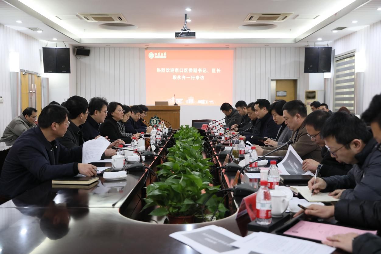 3月8日,镇江市京口区委副书记、区长段永齐,副区长宋小燕一行来校交流附属学校新建工程项目事宜。校长邢卫红、副校长陈红接待了段永齐一行。