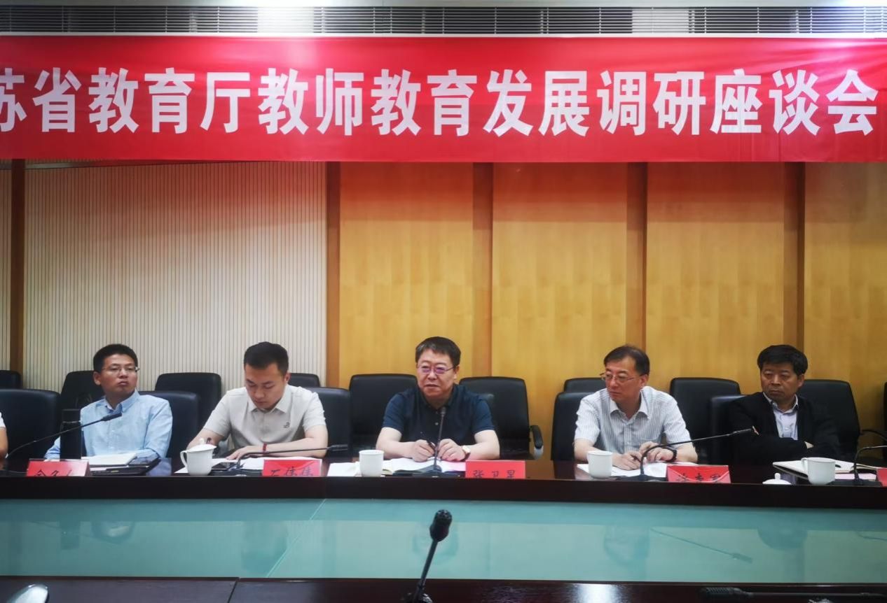 5月27日,江苏省教育厅教师教育发展调研座谈会在我校举行。省教育厅教师工作处处长张卫星,三级调研员许李军,江苏省教师教育专业指导委员会秘书长冯建军,扬州大学副校长王承堂,大发在线副校长邹小波出席座谈会。会议由张卫星主持。