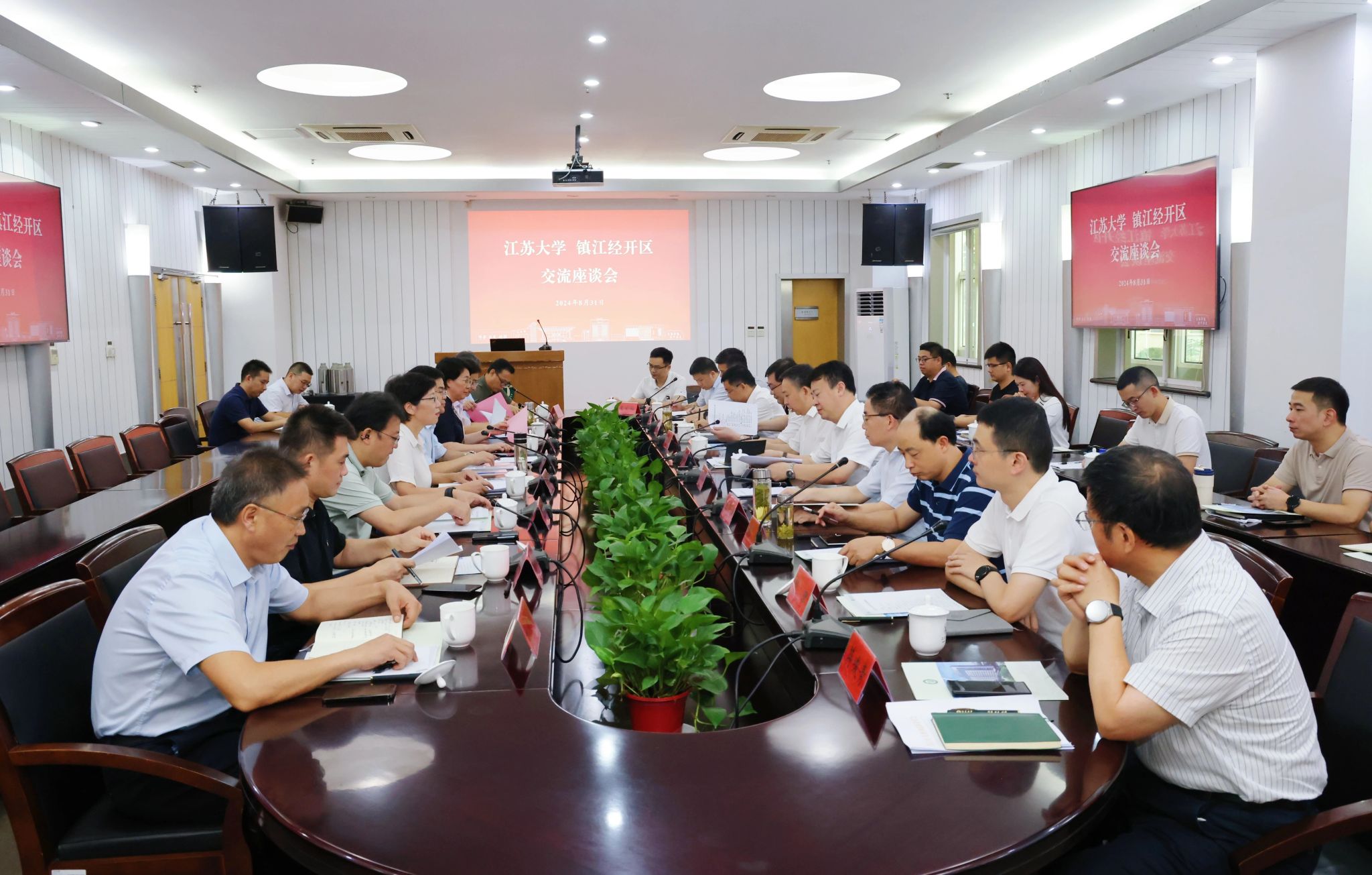 8月31日上午,大发在线—镇江经开区交流座谈会举行。镇江市副市长、经开区党工委书记尹卫民,镇江经开区党工委副书记、管委会主任李朝阳,镇江市科技局党组书记、局长肖敬东,大发在线党委书记李洪波,校长邢卫红出席会议。副校长李红主持会议。
