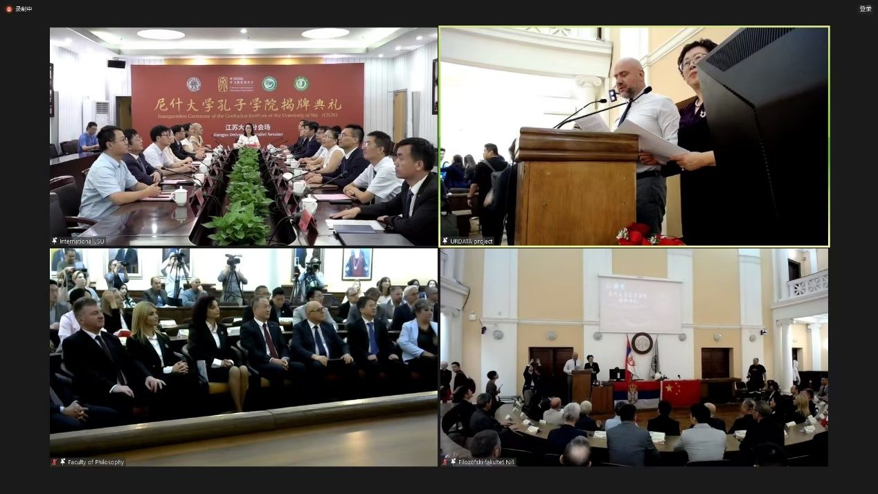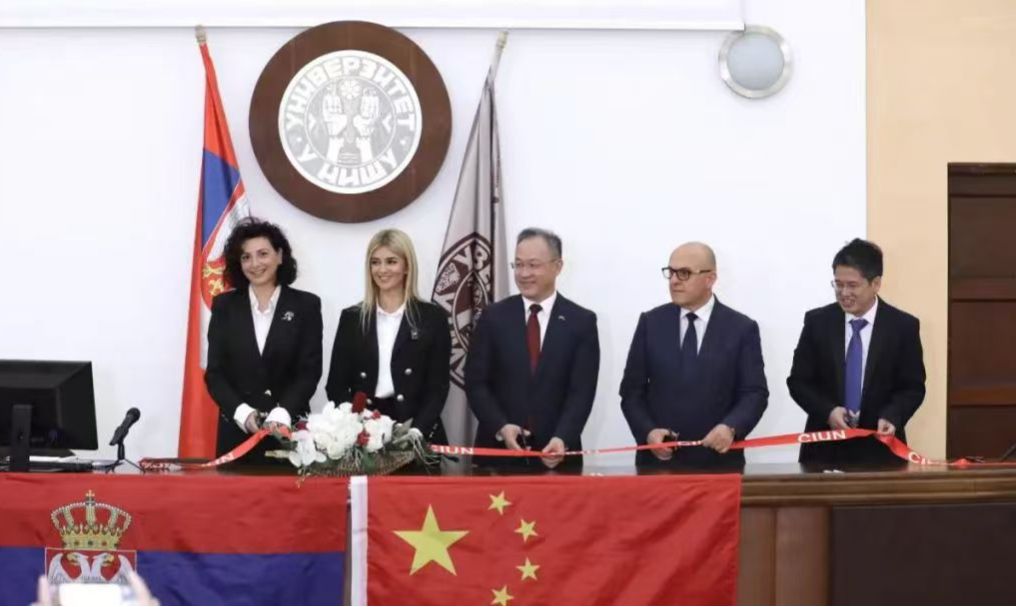 李明、优万娜·米蒂奇、伊万娜·契托科维奇、德拉格安·安蒂奇、邹小波等共同上台剪彩,并为尼什大学孔子学院揭牌。李明代表中国驻塞尔维亚大使馆向尼什大学孔子学院赠送中文学习教材1600余册/套,电子教材近700盒/套。与会嘉宾还共同见证了尼什大学孔子学院与中国电建集团共建的“中国书架”正式启用、与塞尔维亚紫金铜业和波尔文理中学三方签约《汉语教育合作备忘录》及共建“尼什孔子学院紫金中文学习中心”,与山东高速国际合作公司签订校企合作协议。