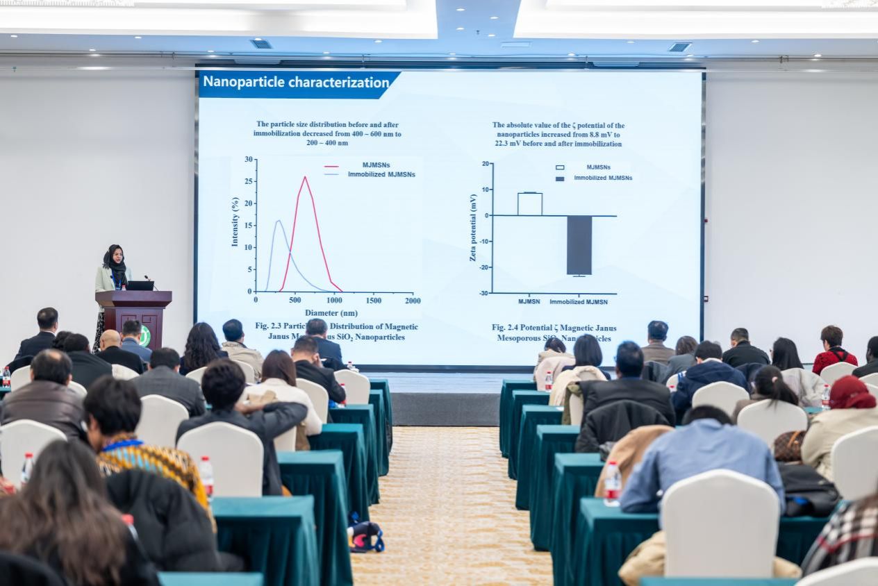 张海军在致辞中表示,作为江苏高校首届外国留学研究生学术交流盛会,本次研讨会搭建了一个开放包容、互动共享的高水平学术平台。他指出,留学生群体不仅是文化交流的重要桥梁,更是推动科技创新的生力军。他期待来自不同国家、不同学校、不同学科的留学研究生能够在此切磋交流、展示成果,并通过学术探讨增进友谊,为构建人类命运共同体贡献智慧与力量。