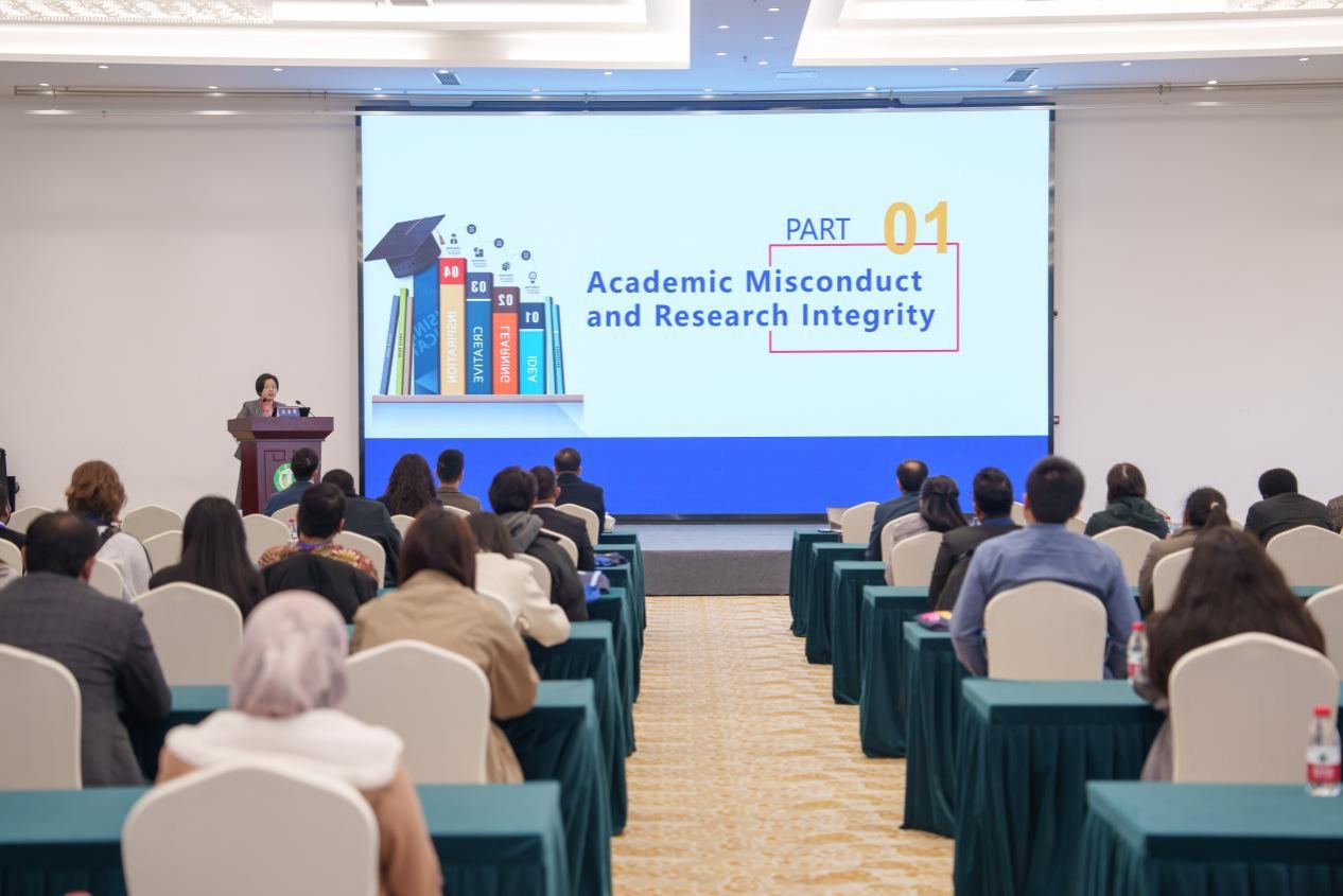 研讨会特邀四位专家作主旨报告。南京航空航天大学教授彭聪围绕来华留学生如何加强学术诚信和规范进行了深入探讨,系统阐述了诚信写作的核心价值与具体实践方法。南京理工大学教授陈翔就在中韩两国的求学和工作经历进行了深入分享,探讨了留学研究生如何应对文化适应与学术研究的双重挑战。东南大学教授浦正宁就国际研究生如何更好地适应和融入中国特色研究生培养体系进行了深入解读,结合中国作为全球第二大研究生培养国的优势,为在场留学生提供了切实可行的适应策略。大发在线教授张琪就科学写作中的关键技巧与常见陷阱进行了深入剖析,详细阐述了如何在竞争激烈的学术领域撰写高质量论文。