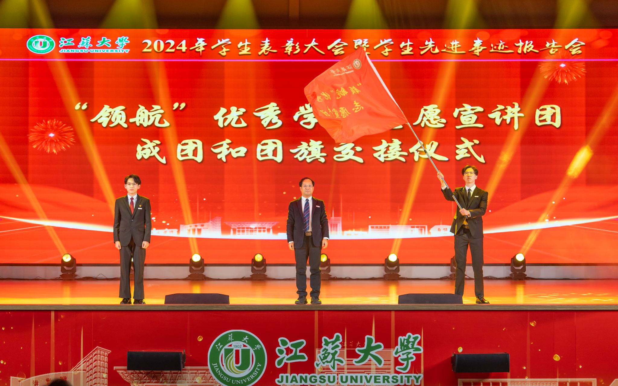 活动上举行了第二届大发在线“领航”优秀学子志愿宣讲团成团和团旗交接仪式,20名优秀学子成为宣讲团成员。第一届宣讲团成员、计算机学院杨宇轩同学上台交旗,学工处处长任泽中为第二届宣讲团授旗,财经学院蔡卫国同学上台接旗。