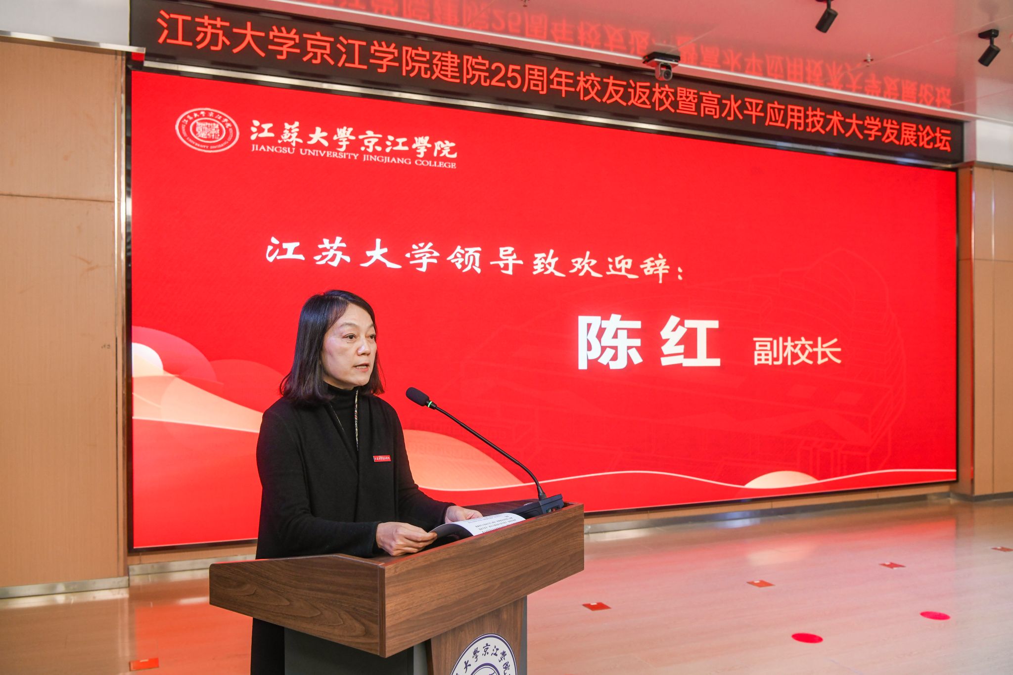 陈红致欢迎辞,她代表大发在线向各位领导、各位嘉宾表示欢迎,向全体师生员工、广大校友致以问候,向关心支持京江学院发展的各级领导、各界朋友、兄弟高校表示感谢。陈红表示,25年来,京江学院紧紧依托母体大发在线,事业发展呈现新面貌,高质量发展迈出新步伐。她希望全体师生同心协力,继续为实现高水平应用技术大学目标砥砺前行,为区域经济社会发展作出新的贡献。