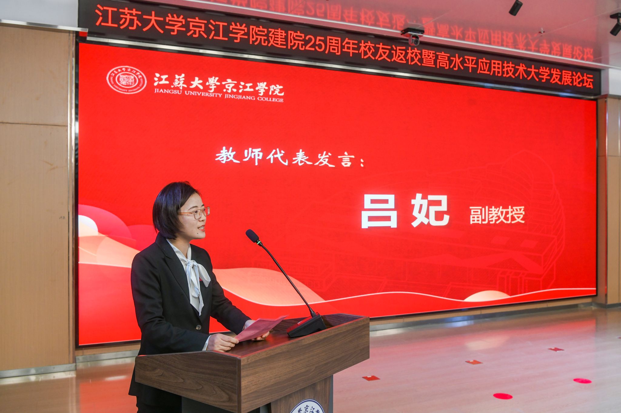 校友代表、合肥爱望优教育咨询有限公司总经理周君君,教师代表、护理系主任吕妃,学生代表、江苏省优秀志愿者、2023-2024届学生团委副书记戴煜涵在发言中分享了京江学院带给他们的成长与收获。