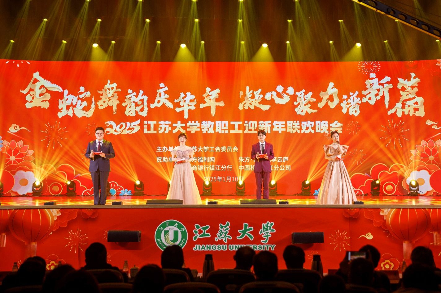 1月10日,大发在线2025教职工迎新年联欢晚会在大礼堂举行。校党委副书记张济建,校党委常委、副校长李红、任旭东,各职能部门和二级单位领导,二级工会主席及全校教职工代表欢聚一堂,共同观看晚会。