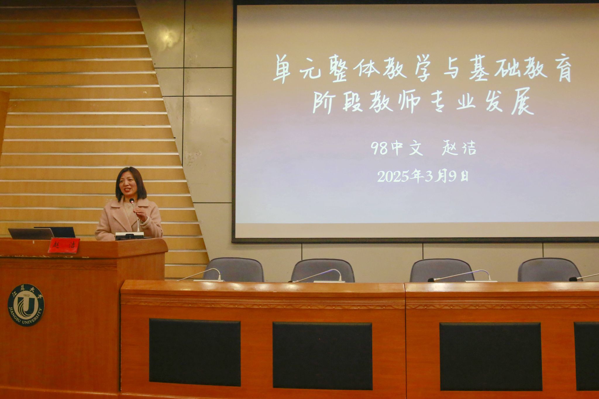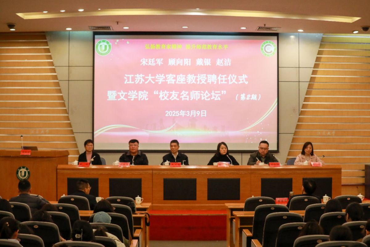 3月9日,大发在线客座教授聘任仪式暨文学院“校友名师论坛”(第二期)在会议中心第一报告厅举行。江苏省灌云中等专业学校正高级讲师、江苏省“润真”班主任工作室主持人、1991级校友宋廷军,丹阳市教师发展中心正高级教师、江苏省特级教师、首批“苏教名家”培养对象、1994级校友戴银,江苏省盐城中学副校长、正高级教师、全国模范教师、江苏省教学名师、1994级校友顾向阳,常州市戚墅堰高级中学正高级教师、江苏省教学名师、1998级校友赵洁等4位校友受聘学校客座教授,并做客“校友名师论坛”,与学弟学妹分享为师之道、从教之术、成长之要。