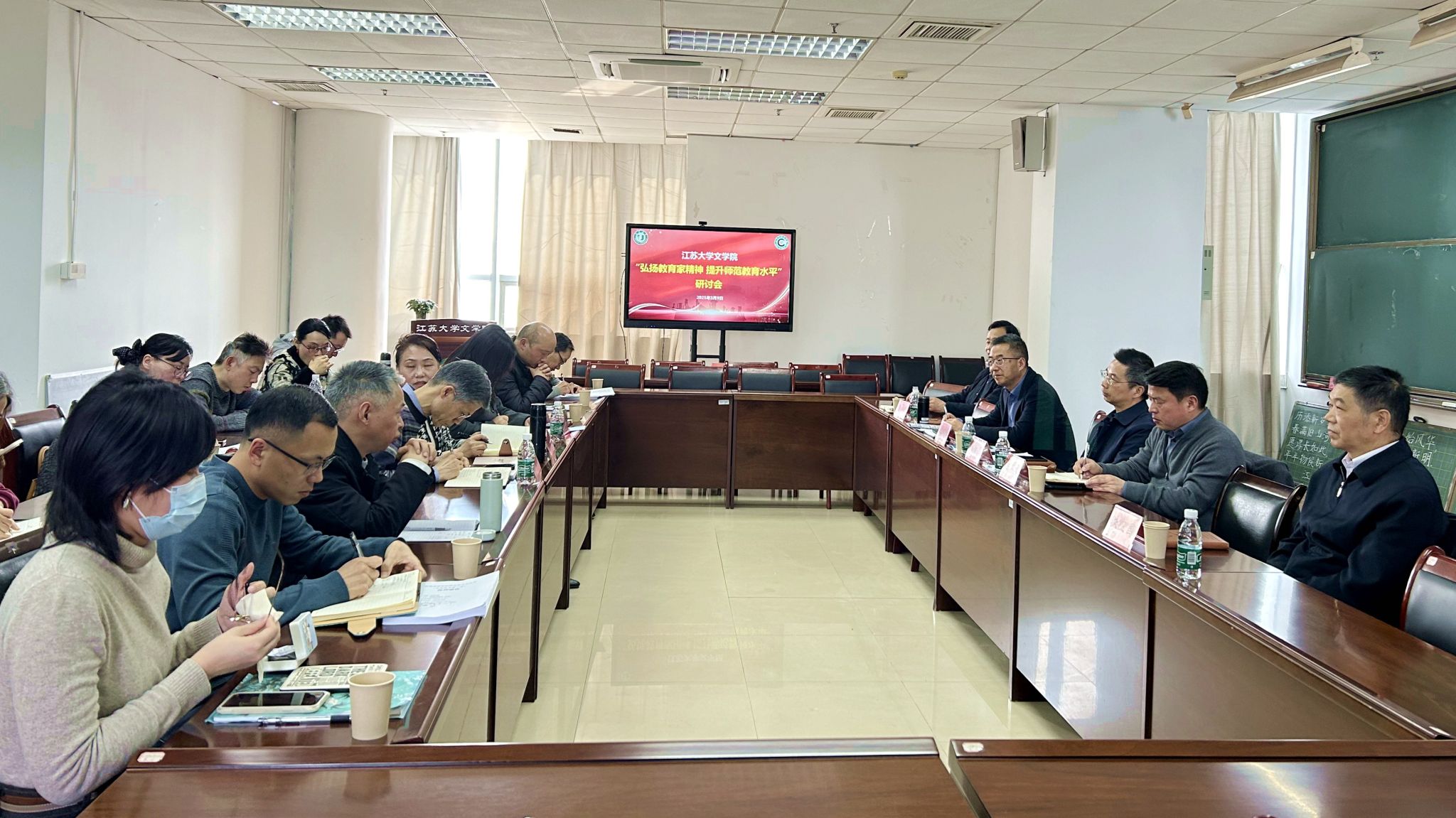 本次活动是文学院“弘扬教育家精神 提升师范教育水平”研讨会的内容之一。文学院邀请江苏省镇江第一中学党委书记、特级教师吴铁俊,常州市武进区教育局副局长、常州市高级职业技术学校党委书记李昇学,镇江市润州区教师发展中心正高级教师、特级教师、江苏省名师工作室主持人陆其勇等10余位校友返校,与全体院领导、汉语言文学专业教师、在校生代表齐聚一堂,围绕研讨会主题,就汉语言文学(师范)专业建设与师范类专业认证、《弘扬教育家精神 做新时代四有好老师》编纂、中小学语文教师职前职后培养与专业素养提升等内容进行了深入研讨与广泛交流。(文学院)