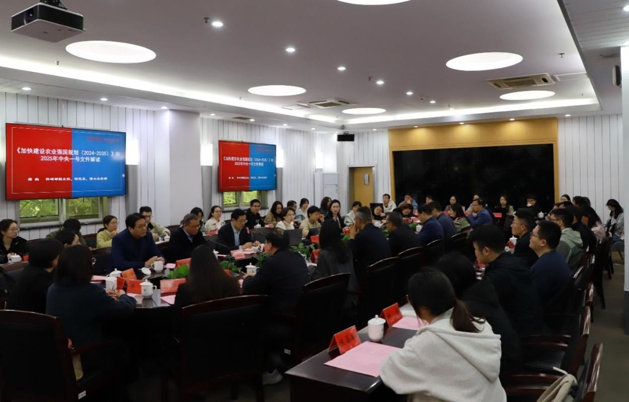 4月13日,“加快建设农业强国规划”学习研讨会在会议中心第二报告厅举行。会议由我校社科处主办,外国语学院和全球发展与安全研究院承办。中共中央党校(国家行政学院)科研部副主任蒲实应邀讲解有关文件精神,并就如何写好决策咨询报告作经验分享。