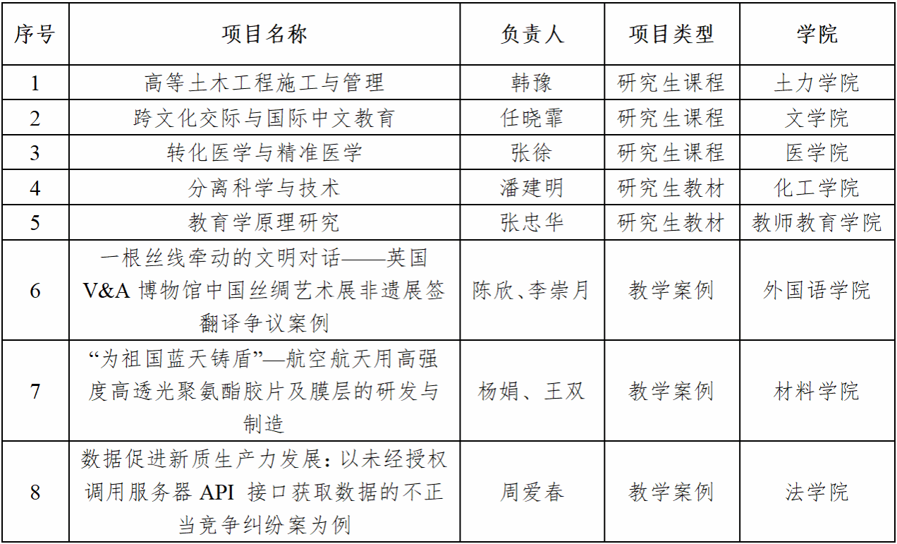 近年来,我校坚持以提高研究生培养质量为目标,深入贯彻《教育部、国家发展改革委、财政部关于加快新时代研究生教育改革发展的意见》文件精神,扎实推进《江苏省研究生教育质量提升工程实施方案(2021-2025)》相关工作,在优质教学资源建设方面取得显著成效。截至目前,已累计获批江苏省研究生优质教学资源24项,其中课程思政示范课3门、课程7门、教材7部、教学案例7项。此外,6门研究生在线课程入选国家高等教育智慧教育平台,53项教学案例入选国家级案例库。(研究生院)