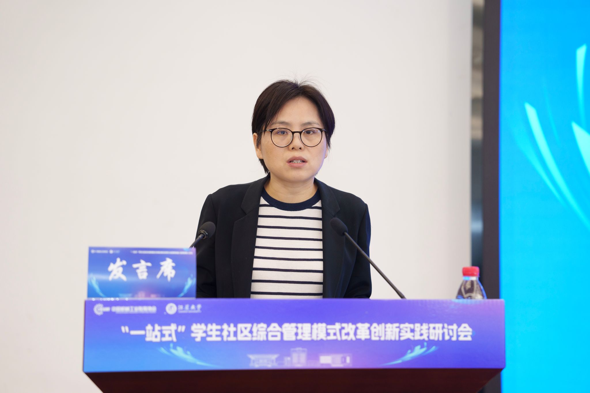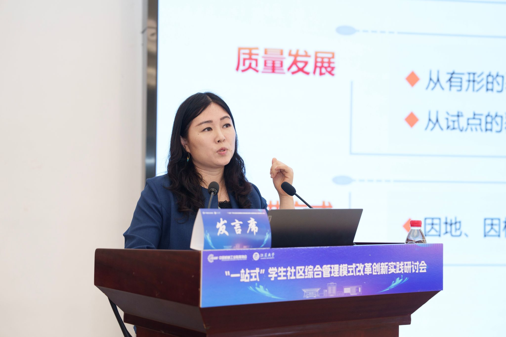 开幕式后,5位知名专家学者围绕“一站式”学生社区综合管理模式改革创新分别作主题报告,为推进“一站式”学生社区建设提供了宝贵参考。王慧敏系统阐述了全国高校思想政治工作网工作开展情况和数智赋能学生社区管理的创新应用与实践路径。苏州大学党委学生工作部部长董召勤立足高校“一站式”学生社区建设实践,针对共性难题提出了具有可操作性的解决方案。南京大学党委学生工作部副部长李兴华分享了“五个一”建设模式下构建师生成长共同体的创新经验。大发在线党委学生工作部部长任泽中解读了“主治·共治·自治·智治”学生社区治理新模式的实践探索。金智教育研究院学生管理与服务中心主任谭利娟从社区育人视角,分享了高校数据应用建设的典型案例。