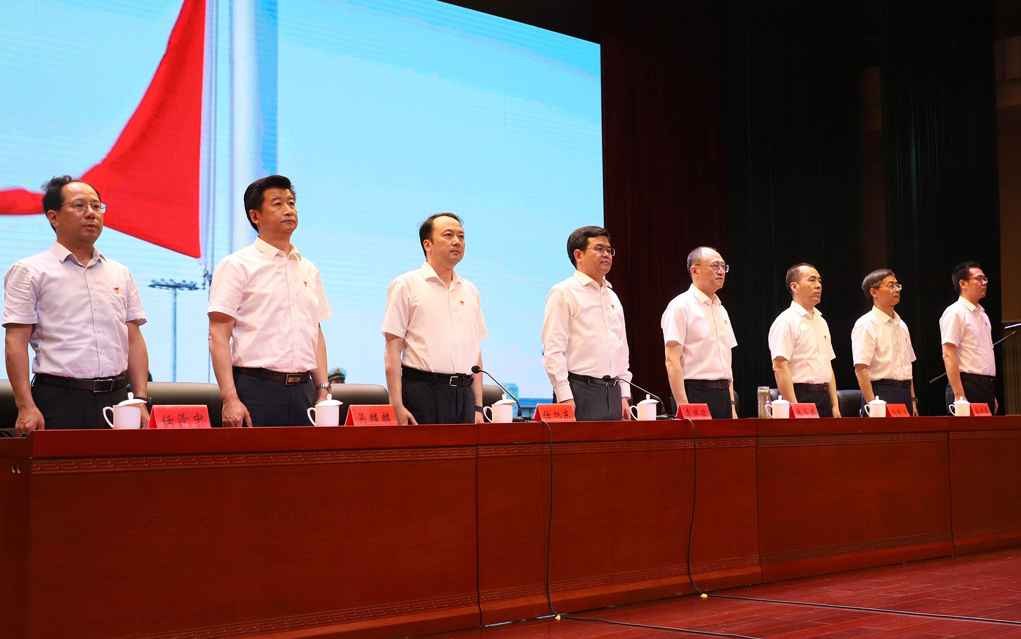 张济建带领全体党员重温入党誓词。党员同志面向党旗庄严宣誓,在铮铮誓言中重温入党初心,坚定理想信念,牢记职责使命。
