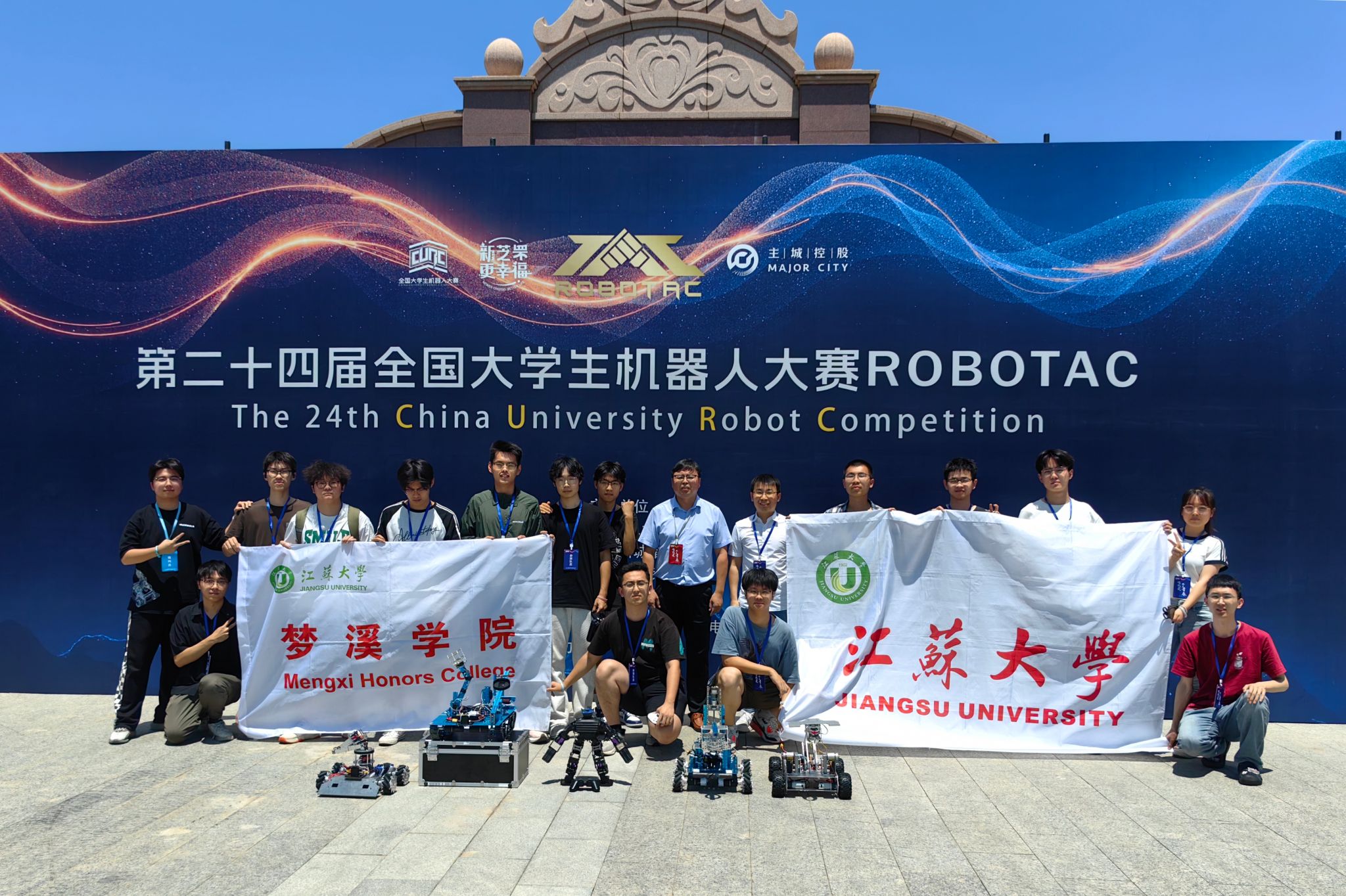梦溪学院负责组织该项赛事,首次参赛组织了来自梦溪学院、机械学院、电气学院等跨专业本科生组成的3支队伍,分别参加人形功夫搏击、烽火对抗赛(综合对抗赛)、速胜挑战赛等三个赛项。在指导教师的悉心指导和参赛同学的不懈努力下,获得人形功夫搏击一等奖(亚军)、烽火对抗赛及速胜挑战赛三等奖,展示了我校学子的卓越风采。(梦溪学院)