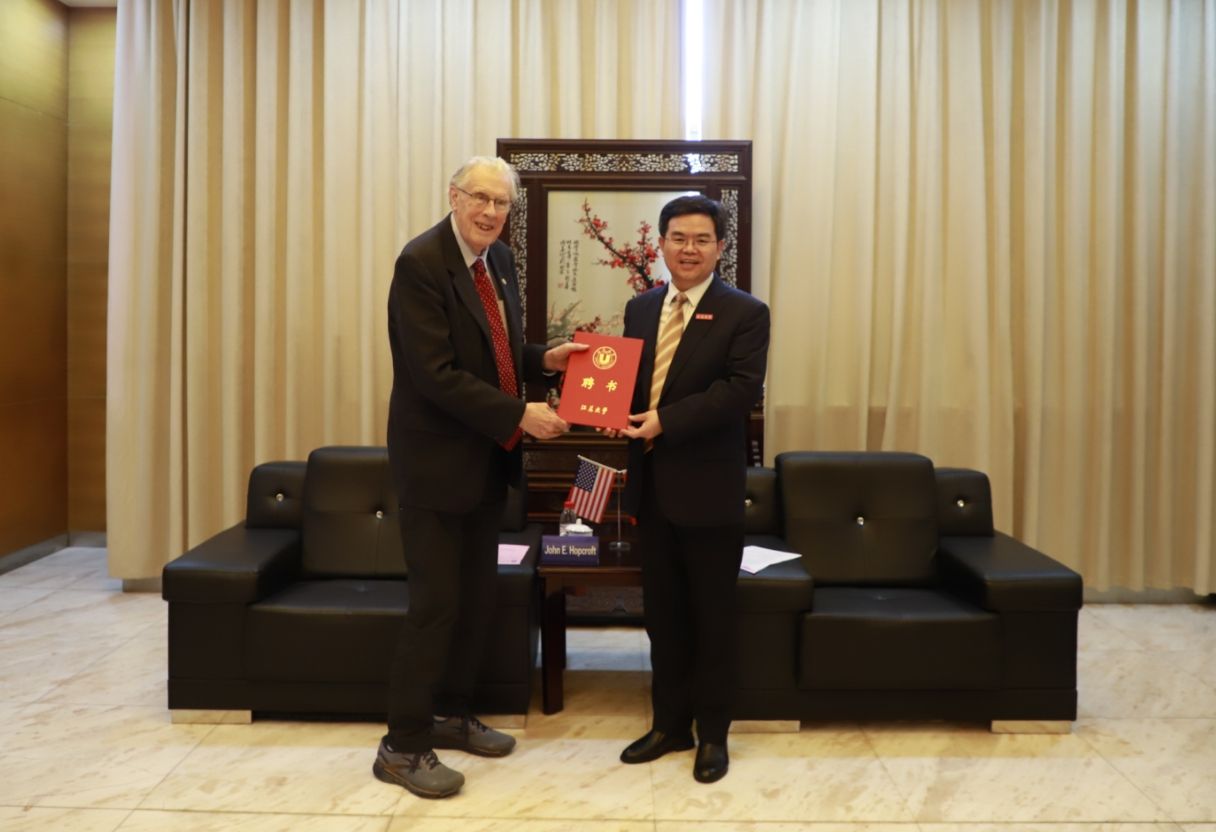 约翰·爱德华·霍普克罗夫特教授是享誉全球的计算机科学家、教育家,“101计划”提议者,美国国家科学院、国家工程院、艺术与科学院院士,中国科学院外籍院士。1986年他被授予计算机科学领域的全球最高奖项—“图灵奖”。2005年获得美国电气电子工程师学会哈利古德纪念奖,2007年获得美国计算机研究学会杰出服务奖,2009年获评国际计算机学会会士并荣获 Karl V. Karlstrom杰出教育家奖,2010年获得美国电气电子工程师学会约翰冯诺依曼奖章,2016年荣获外国专家在华最高荣誉——“中国政府友谊奖”,2024年荣获中华人民共和国国际科学技术合作奖。(国际合作与交流处)