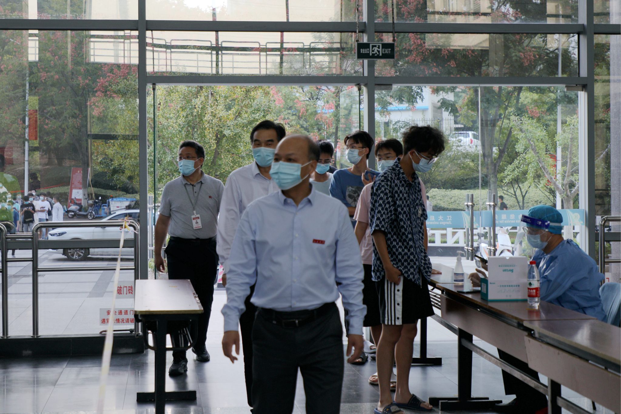 校领导采取“四不两直”的方式,督导检查全员核酸检测工作。