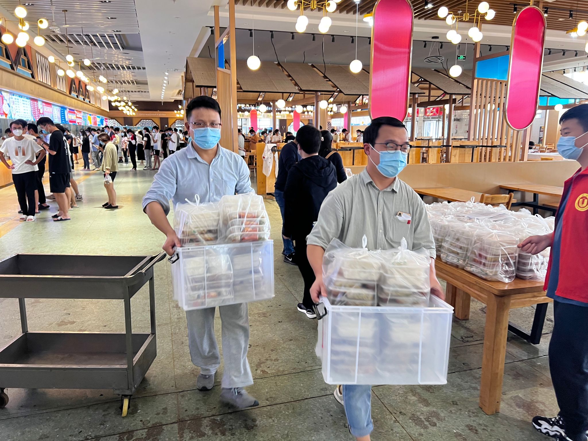 学院领导克服各种困难,以时不我待的紧迫感和责任感,积极投身疫情防控工作。辅导员每天深入学生社区宿舍,每晚召开线上学生交流会,聆听学生心声,协调解决实际困难,帮助生病就医、行动不便等特殊人群提供服务。在校教师坚持开展科研,并踊跃报名参与核酸检测、送餐服务等志愿服务工作,龙凌亮、薛松林、岳学杰老师深夜完成科学研究,白天继续参加抗“疫”工作,汽车燃油耗尽再换成电瓶车、步行……连续奔波、废寝忘食,他们毫无怨言,“面对疫情没有人是旁观者,我们要用搞科研的勇气和韧性,战胜困难、战胜疫情。”