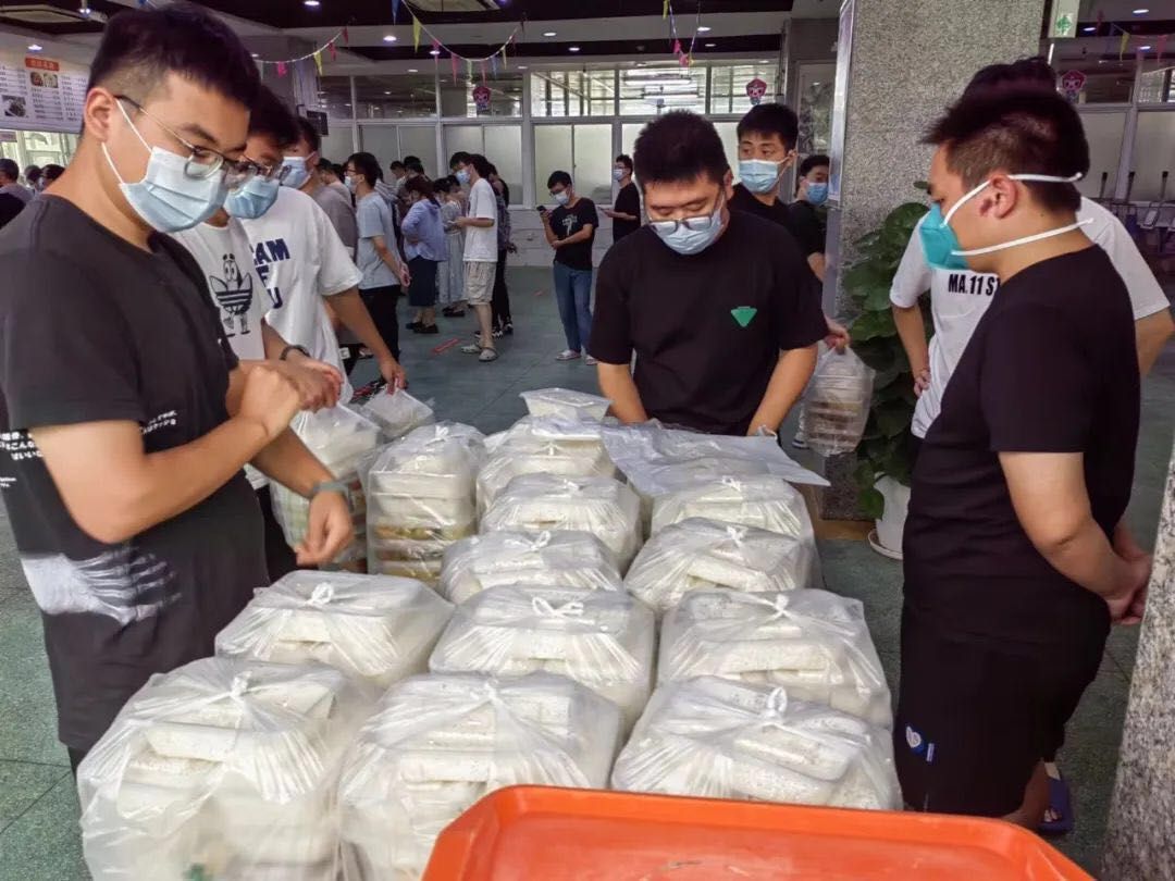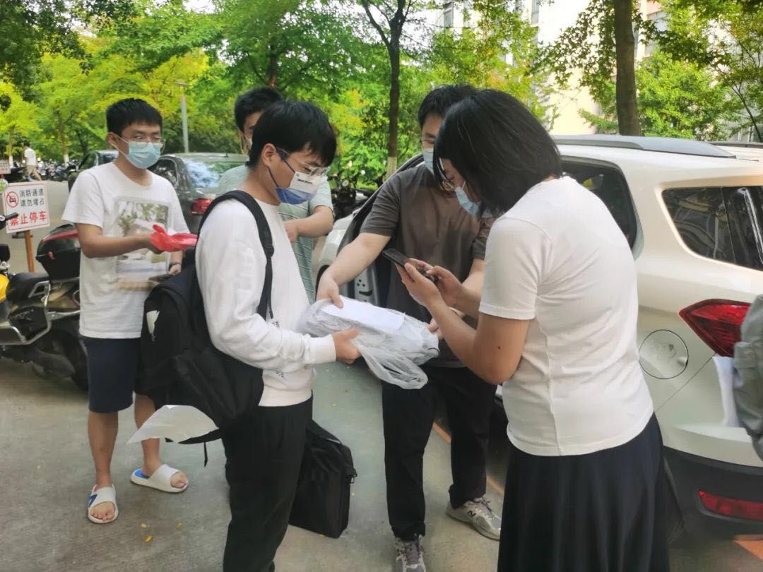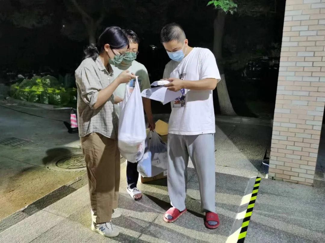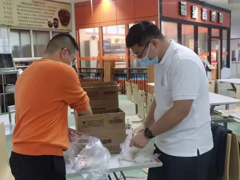 志愿者们承担着校内核酸检测、特定学生送餐等工作,时间紧、任务重,但是没听到一声“累”,只要召唤都是“我可以”。条件有限,简单的铺盖,志愿者们往往和衣而眠,睡不了几个小时就再次投入“战斗”。学院有二十余名走读生滞留校内,考虑到实际情况,电气志愿者们内外联动,为滞留学生送上换洗衣物等,保证学生基本需求。工科学院研究生科研任务重、学习压力大,为了不耽误研究生们的学习科研任务,志愿者们齐齐上阵,帮助同学们把放置在工作室的电脑等学习物品送到宿舍,分门别类,有条不紊。学院全体辅导员未被封控的都在校内全天候值守,被封控的辅导员们也在线上忙碌不停,忙完了白天的工作利用晚上时间走访学生宿舍,关心关爱学生,帮助解决困难。除了校内的教师志愿者,学院多名住在家属区的研究生们也主动承担起为家属区内特定静默学生送餐的任务。