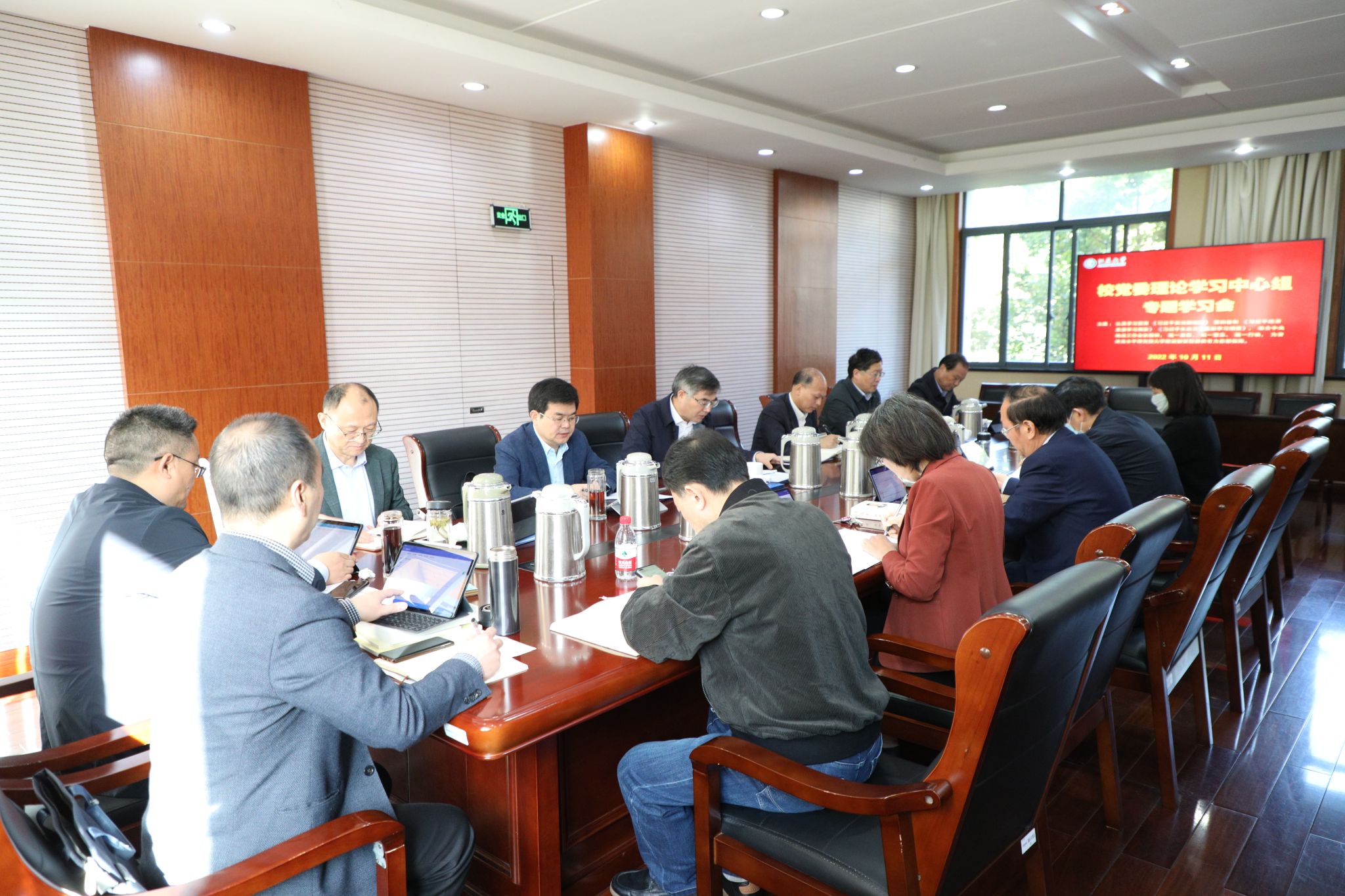 学习会上,袁寿其以“第一议题”领学了《求是》杂志2022年10月1日刊发的习近平总书记重要文章《新时代中国共产党的历史使命》;校长颜晓红领学了《中华人民共和国宪法》部分内容;校党委副书记李洪波领学了《习近平谈治国理政》第四卷中关于经济和生态文明的相关内容。颜晓红,校党委常委、副校长张济建、全力、赵玉涛,校党委常委、统战部部长杨敬江围绕学习主题并结合工作实际作重点发言,与会人员进行了交流学习。
