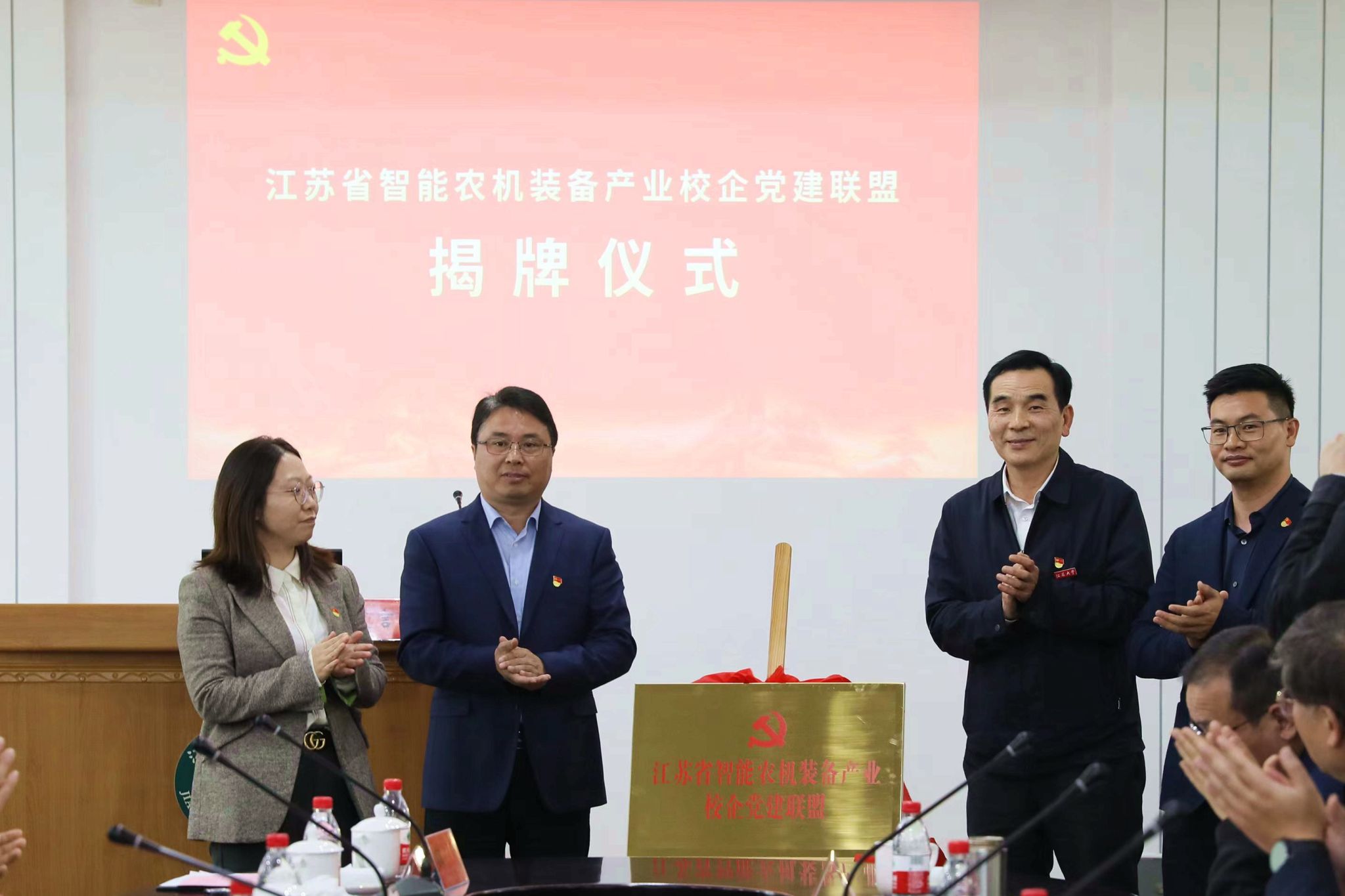 签约仪式上,还举行了江苏省智能农机装备产业校企党建联盟揭牌仪式。(组织部 党办 农业工程学院)