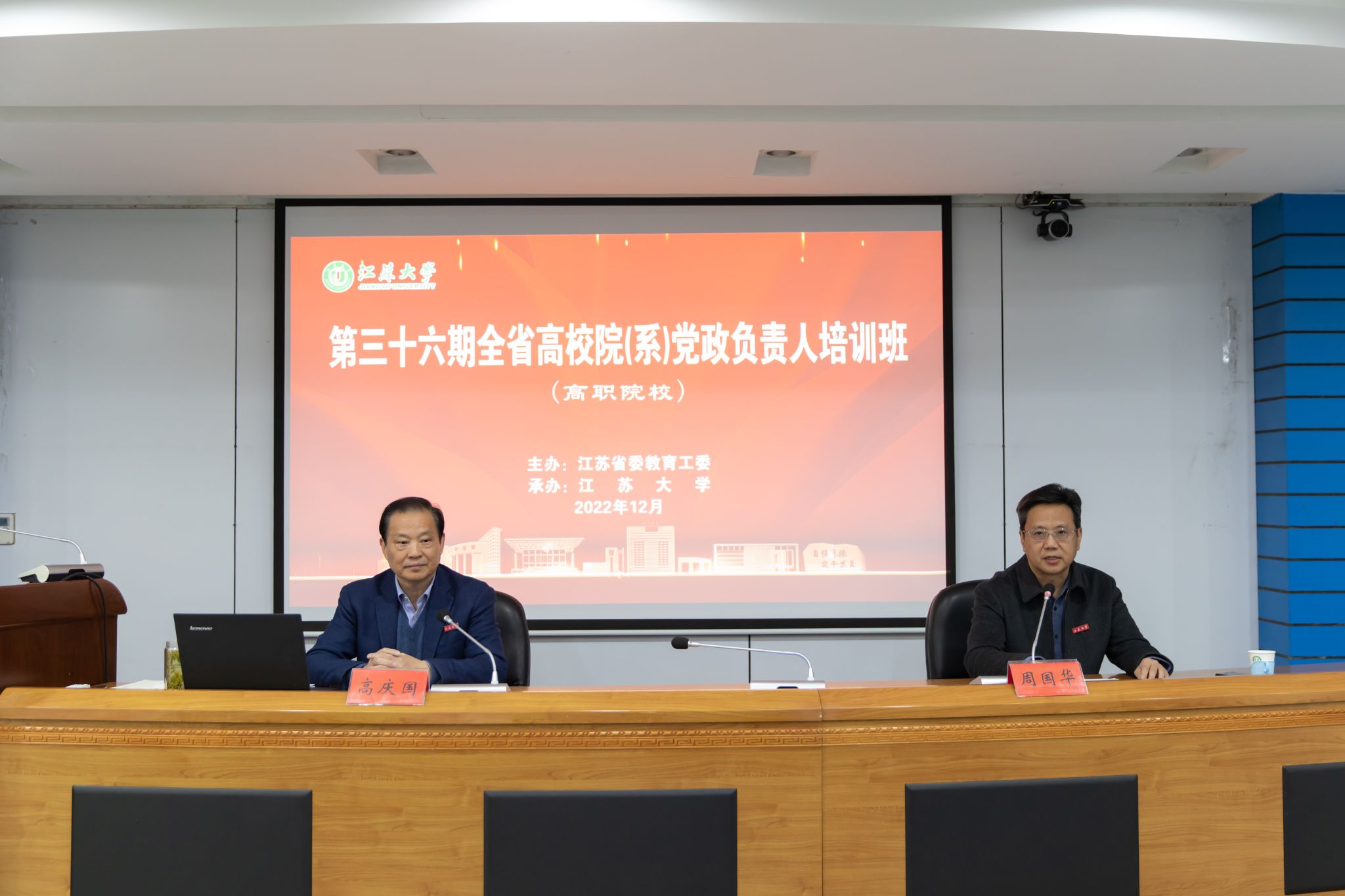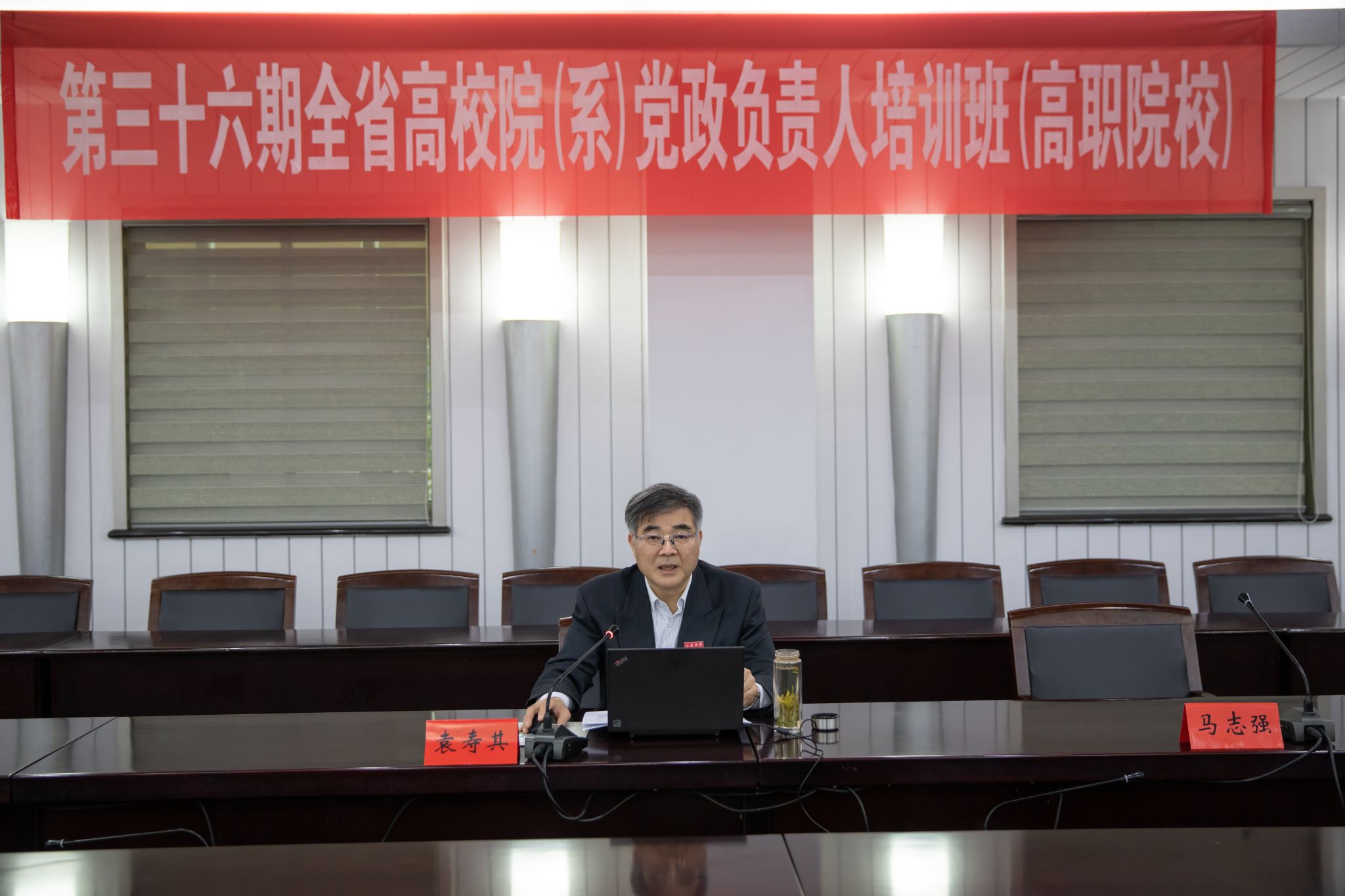 校党委书记袁寿其,校党委常委、纪委书记、省派驻监察专员高庆国,党的二十大代表、全国脱贫攻坚楷模赵亚夫等分别作辅导报告。来自全省高职院校的72名院(系)党政负责人参加培训,培训通过腾讯会议的方式线上开展。