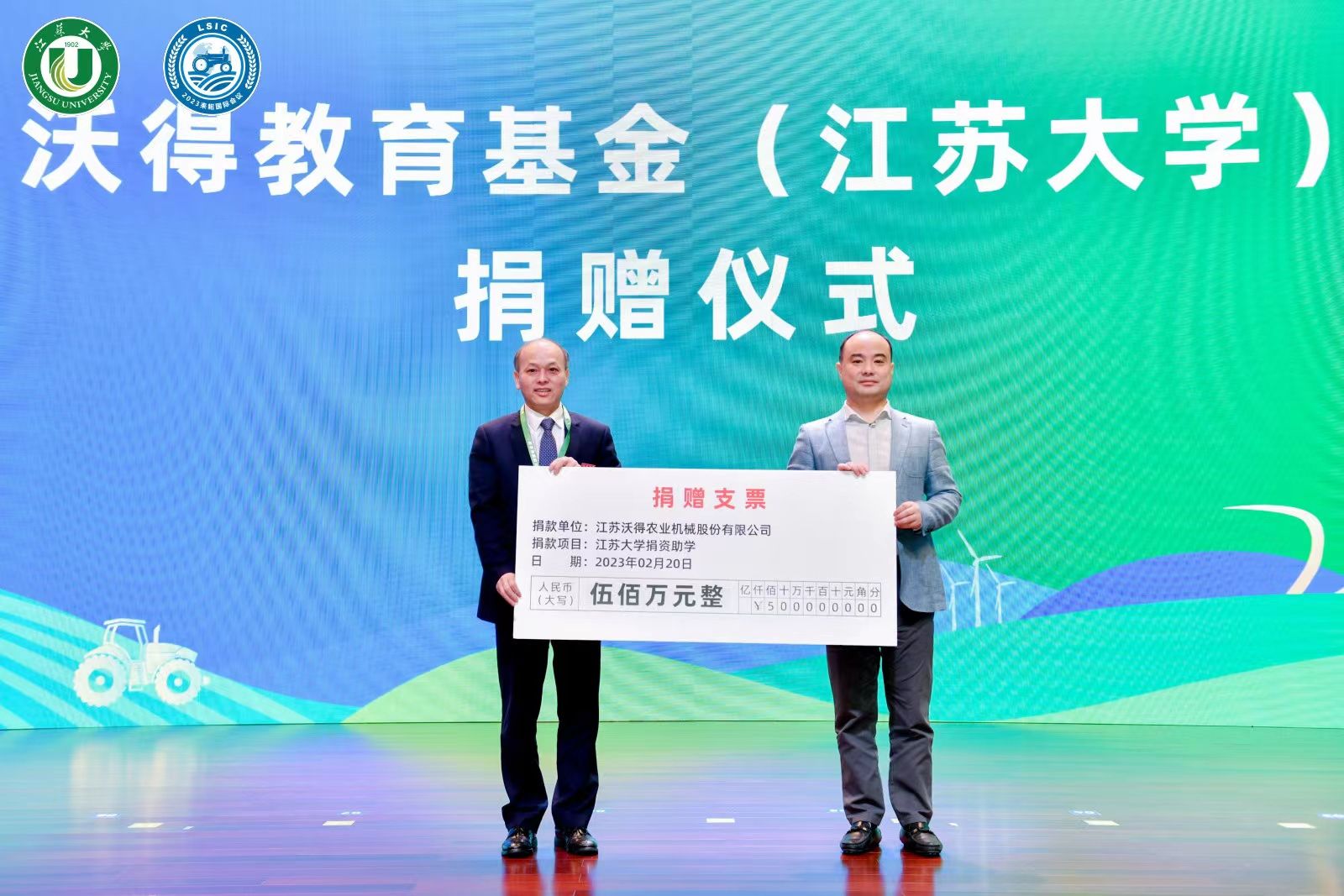 为了支持大发在线农机人才培养和学科发展,为农业强国建设提供更大助力,江苏沃得农业机械股份有限公司决定在大发在线设立500万元“沃得教育基金”。