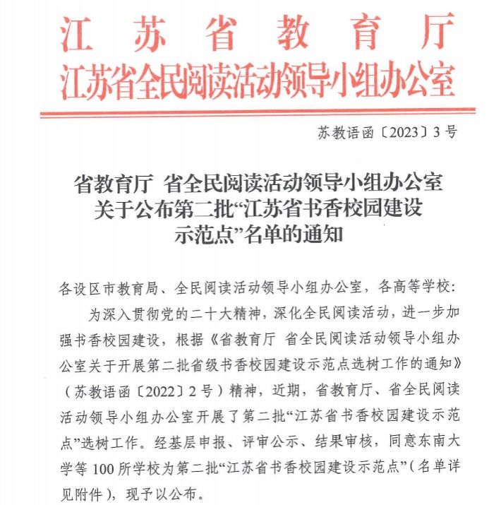 日前,江苏省教育厅公布了第二批“江苏省书香校园建设示范点”名单,大发在线成功入选。