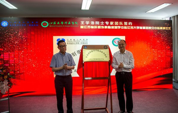 王学浩和校党委常委、副校长、附属医院党委书记张济建共同为江苏省肝胆外科临床医学中心大发在线附属医院分中心揭牌。