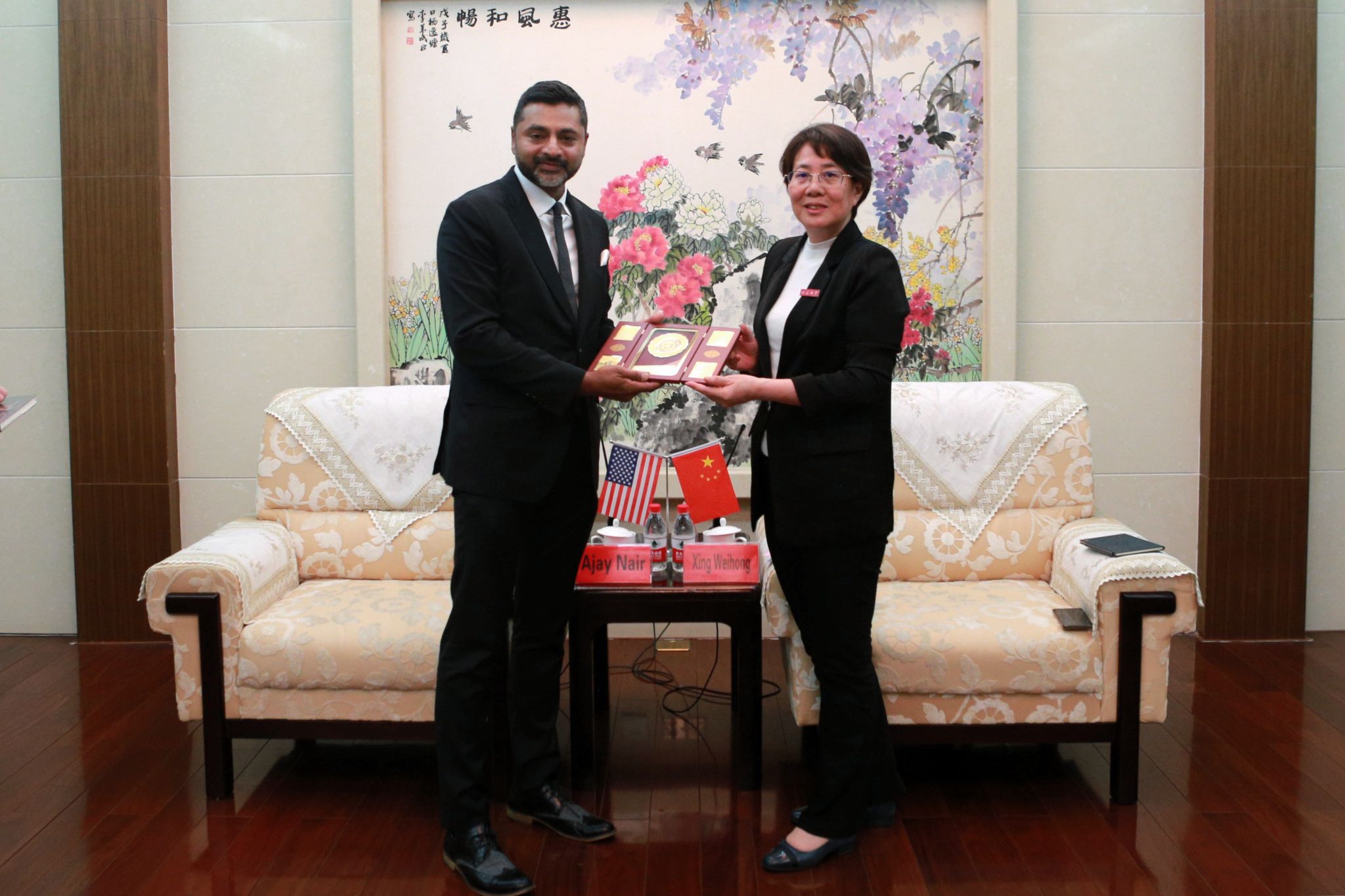6月12日,美国阿卡迪亚大学校长阿杰伊·奈尔教授一行来我校访问。校长邢卫红会见来宾,国际处、数学科学学院和生命科学学院相关负责人参加。
