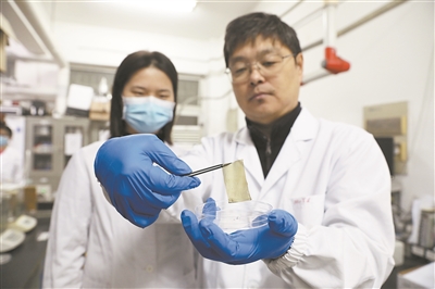 研究人员向记者展示多功能仿生柔性膜。大发在线宣传部供图