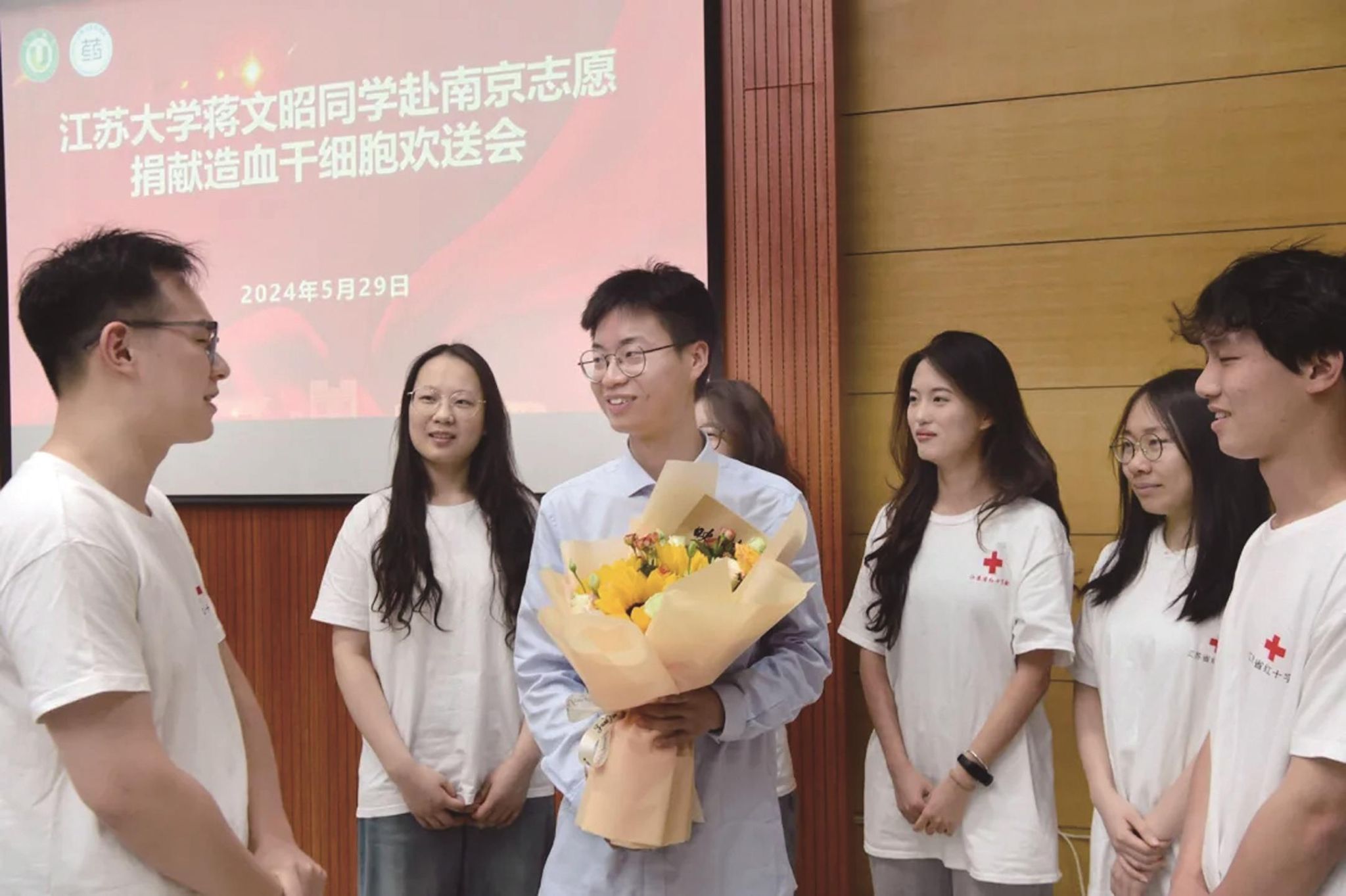 蒋文昭(捧花者)参加捐献欢送会