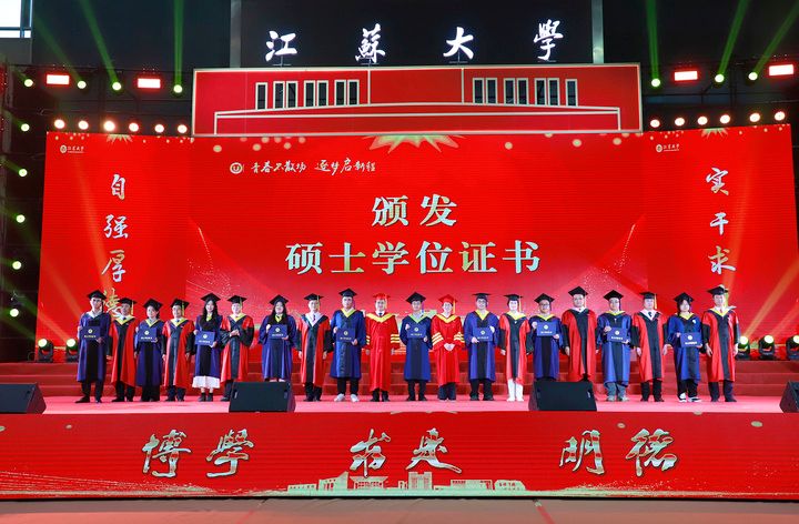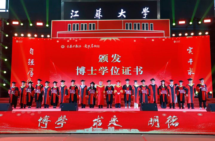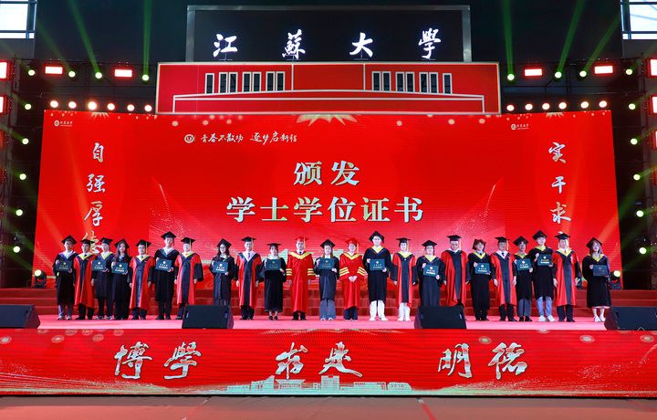 上午10时,2025届博士生、硕士生、本科生代表依次登上主席台。学校领导及党委常委为他们一一颁发学位证书、扶正流苏。大发在线党委书记李洪波为优秀毕业生代表颁发荣誉证书。