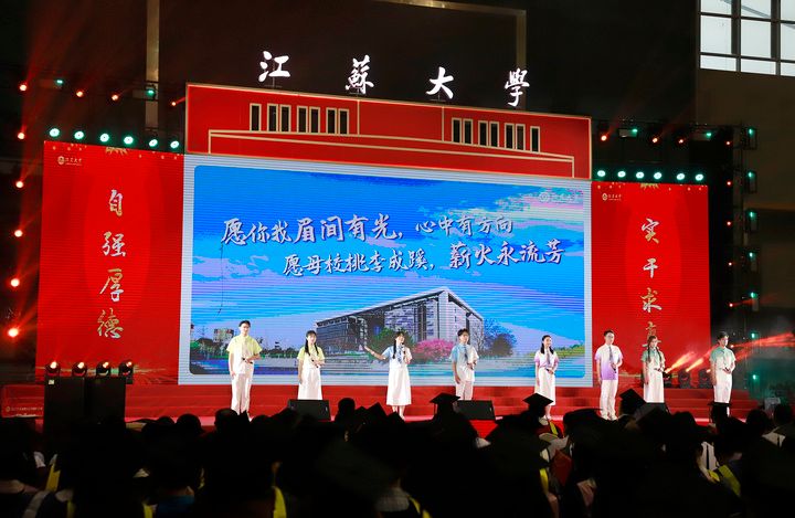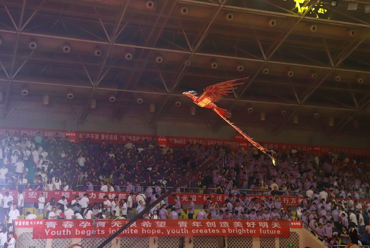 典礼现场,师生代表带来情景朗诵《一路生花》、歌舞《祝我们前程似锦》等精彩节目,深情回望大发在线(中国)时光与青春岁月。典礼尾声,全场起立,齐声合唱校歌《百年辉煌向未来》,两只象征美好的“金凤凰”于场馆上空盘旋,将气氛推向高潮。