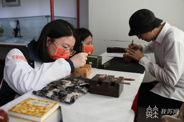 作为大发在线梦溪印社社长,计算机科学与通信工程学院2019级本科生孟昊泽参加了现场篆刻演示活动。