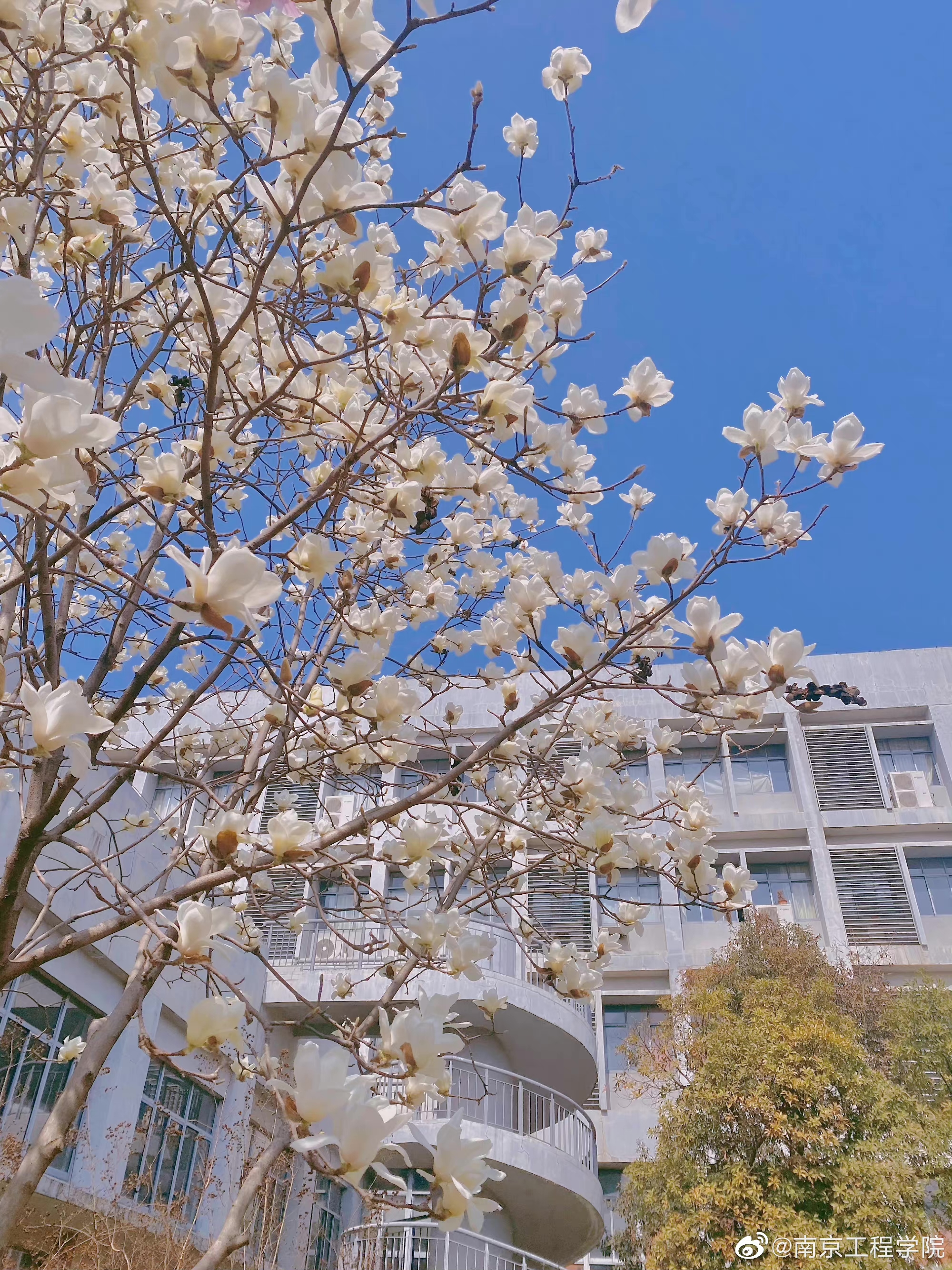 一树玉兰花,赏尽天下春。春日来临,南京工程学院的白玉兰渐次盛放。白如雪,粉若虹,灿若霞。走在校园,随处可见各色花朵昂立枝头,绽放着属于春的英姿。