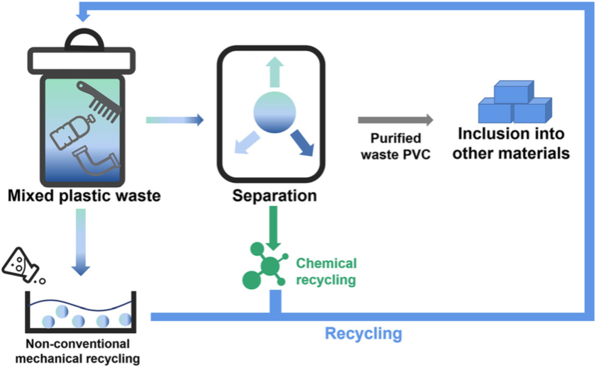 作为五大通用塑料之一,聚氯乙烯(PVC)凭借其出色的机械性能以及独特的抗腐蚀性在家具、建筑、包装等领域有着广泛的应用。然而随着使用量的日益膨胀,越来越多的废弃PVC也得以产生。从保护环境、节约资源、实现可持续发展角度看,对废弃PVC进行回收势在必行。文章比较全面地总结了PVC回收的策略,包括机械回收和化学回收,着重从回收工艺的环境效应、回收产品的经济效应等角度论述了各回收策略的优缺点。此外,通过典型实例分析,结合促进高质量发展的要求对PVC回收方面存在的挑战和未来发展方向进行了简要分析。